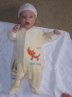 Not that we're not enjoying ourselves. But it is hard. I started thinking yesterday that, since they eat about every 3 hours, we repeat the same thing 8 times a day. That is 56 times a week- and its been a month now, so we've done it about 300 times. Without a break. And knowing that it will continue for a minimum of a month more, and that only if we're lucky. The book that my friend Kearsley sent, the American Academy of Pediatrics baby guidebook, describes it best, I think: grueling. Sometimes I can't help but think how easy it would be if we just had one baby- then we wouldn't both have to get up for both night time feedings (we have one at about 11 or 12 and one at about 3). But then I read about colicky or fussy or sensitive babies and think that one of them would be harder than both of our "easy" babies for sure. And I know I'm getting a lot more help because we have two. Just this week we actually had to cook dinner for ourselves- we've gotten a month's worth of food from family, friends and neighbors. Plus, we get twice as much love, twice as many almost-smiles and twice as many laughable moments.